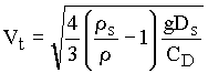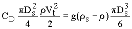 where CD is a drag coefficient. Equating the submerged weight and the