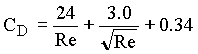 This relationship between the drag coefficient and Reynold's number for smooth spheres is shown below.
