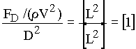 Aproj is the projected area, i.e., the area of the object projected onto a plane perpendicular to the flow so that Aproj = pD2/4 for a sphere. Comparison with P1 will show that CD = 8P1/p. The general functional dependence, namely P1 = f(P2), is not changed by constant factors.