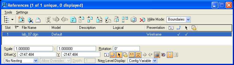 H. Attach "Z:\MicroStation\lab_07.dgn" to "Z:\MicroStation\lab_08.dgn" as a reference file.