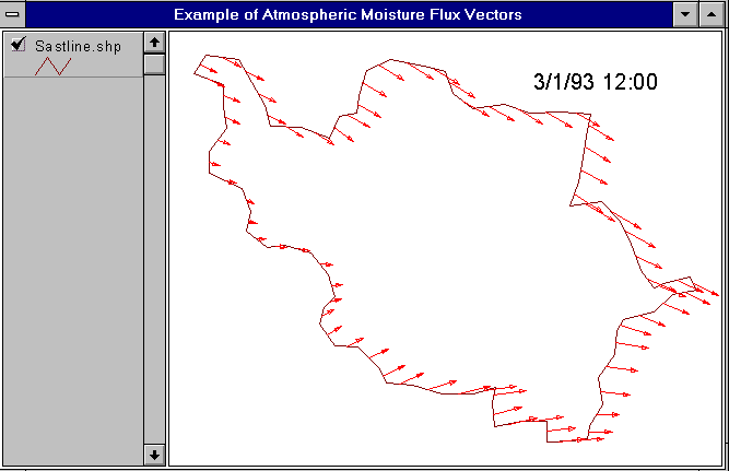 Here is an example of the flux vectors computed at noon on 1 March 1993.