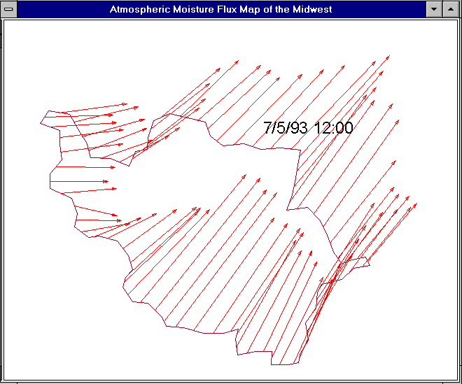 This exercise is concerned with visualizing and calculating data concerning atmospheric moisture flow over the Midwest during the period of the 1993 Midwest flood. The data were compiled into a database and interpolated onto the borders of the Midwest study region by Allan Bradley of the Iowa Institute of Hydraulic Research, to whom our gratitude is extended. He has provided the following explanation of how the data were developed: