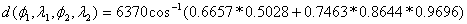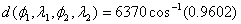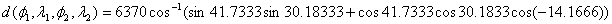 l1, l 2, are the longitudes. l 1 - l 2 = -111.8333- (-97.6667) = -14.1666º