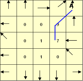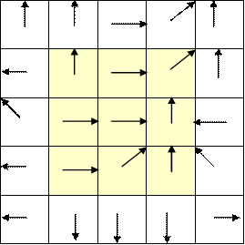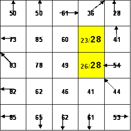 Following is a grid of elevations. Because in general it is not possible to unambiguously determine flow directions around the edges, these have been specified for you as indicated.