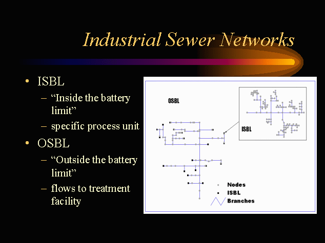 Industrial sewer networks exist in every chemical manufacturing facility and petroleum refining facility to carry process wastes to a treatment facility. They can be broken down into two parts, as shown above.
